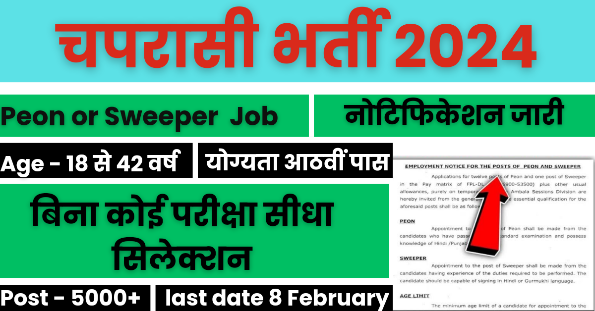 Peon Recruitment 2024 : चपरासी के पदों पर भर्ती का नोटिफिकेशन जारी ,8वीं पास के लिए बिना परीक्षा निकली भर्ती